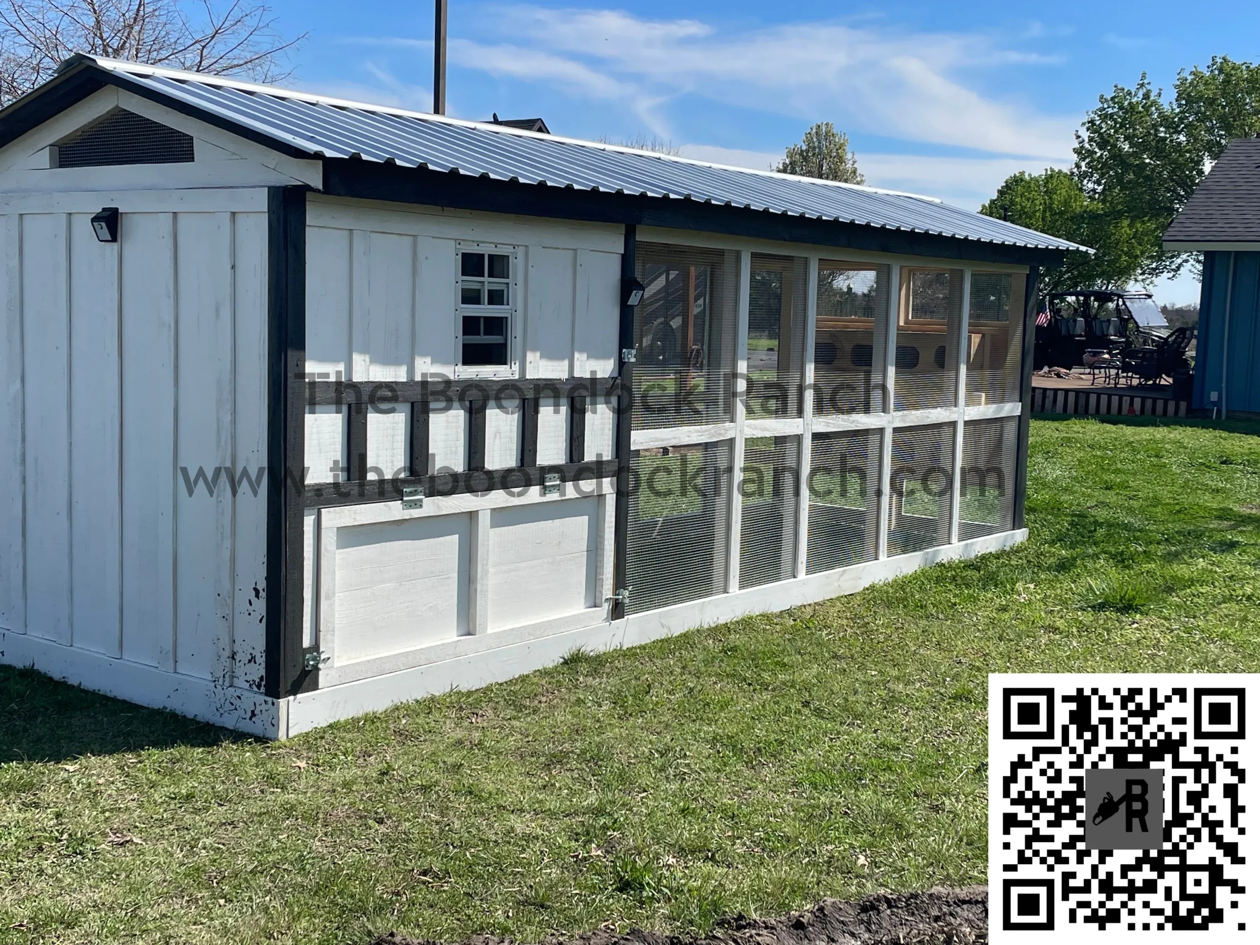 Experience luxury poultry care with ‘The Deluxe Chicken Palace,’ a spacious 6×20 ft. coop for about 30 chickens. Featuring a solar-powered door and 8 external-access laying boxes, it offers a blend of convenience and comfort for your flock, with a design focused on a more compact henhouse.